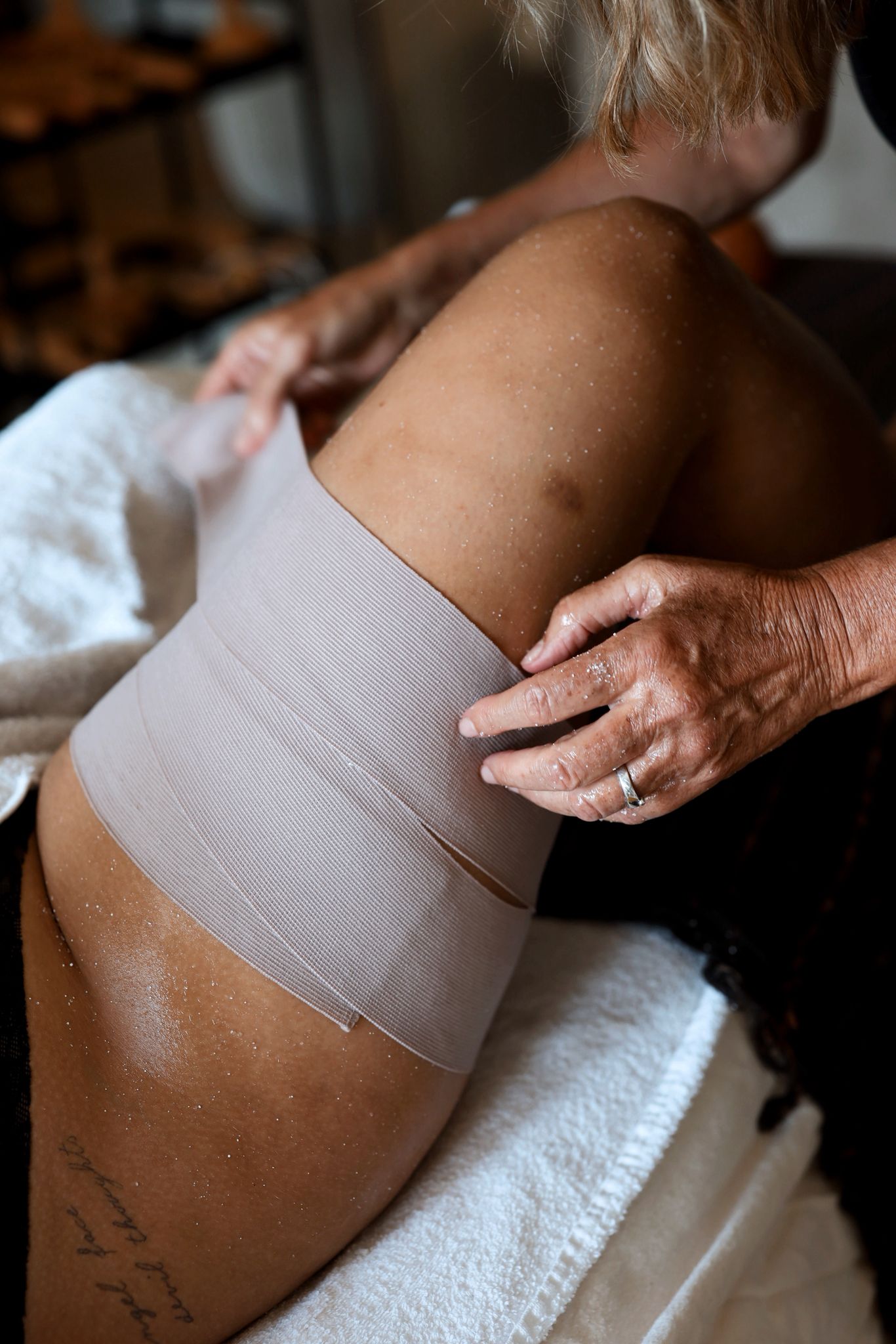 Durch sanfte, kreisende und pumpende Griffe entlang der Lymphbahnen wird der Abtransport von Flüssigkeit gezielt unterstützt.
